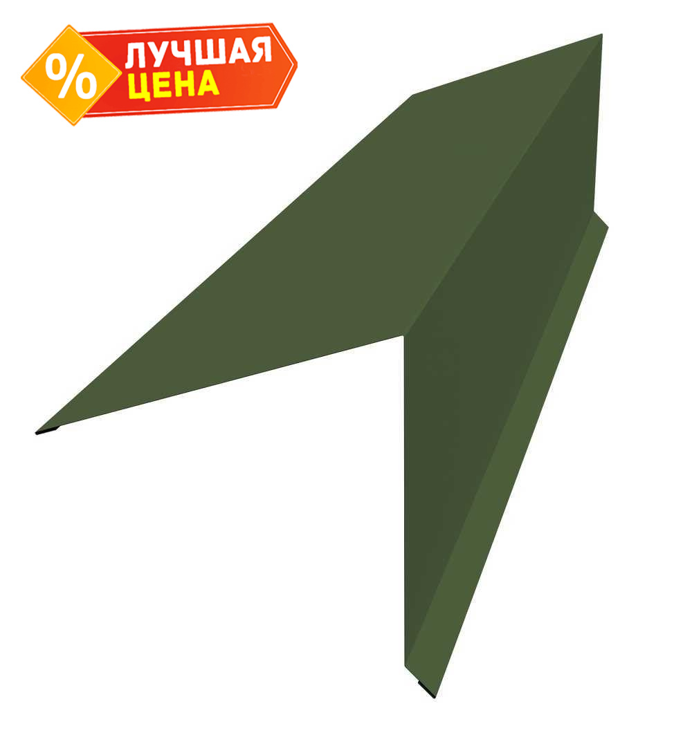 Планка конька односкатной кровли Grand Line 180x160 0,5 GreenCoat Pural BT с пленкой RR 11 темно-зеленый (RAL 6020 хромовая зелень)