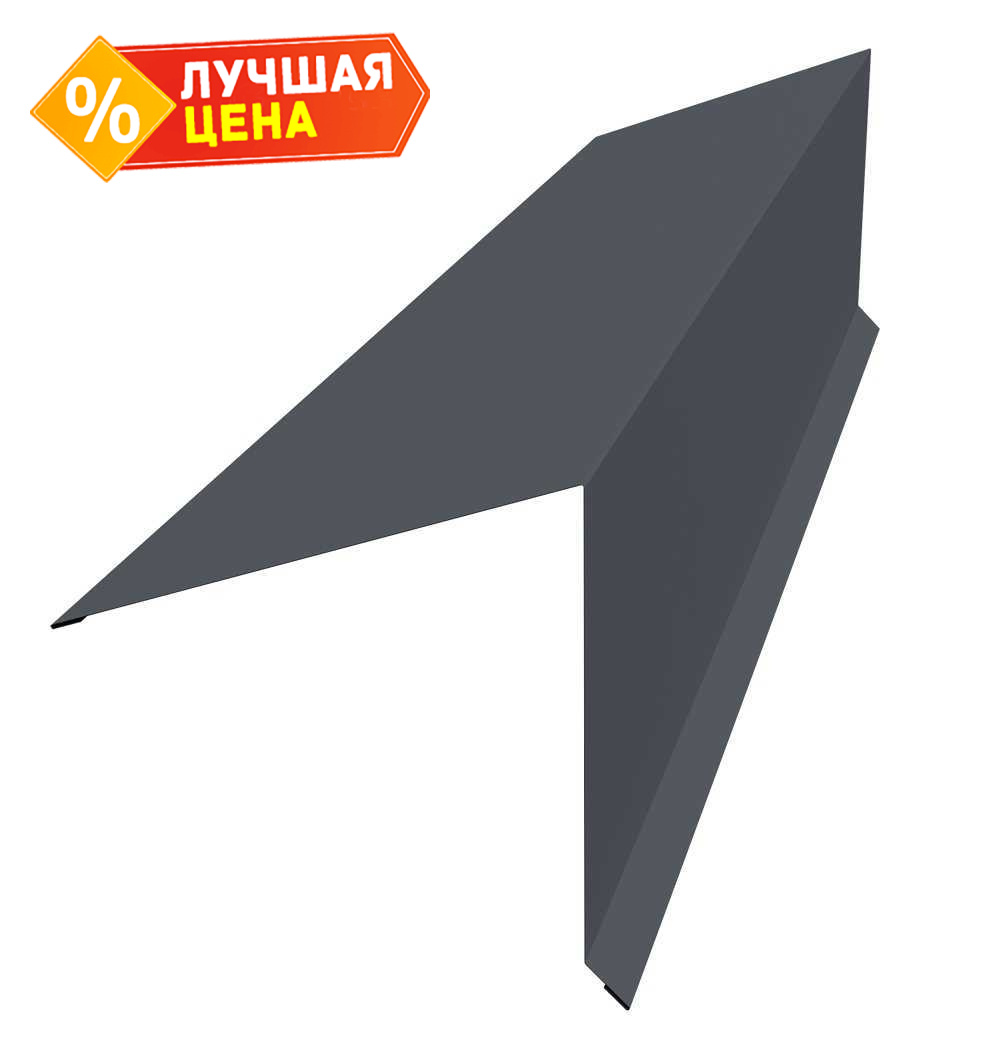 Планка конька односкатной кровли Grand Line 180x160 0,5 GreenCoat Pural BT с пленкой RR 23 темно-серый (RAL 7024 мокрый асфальт)