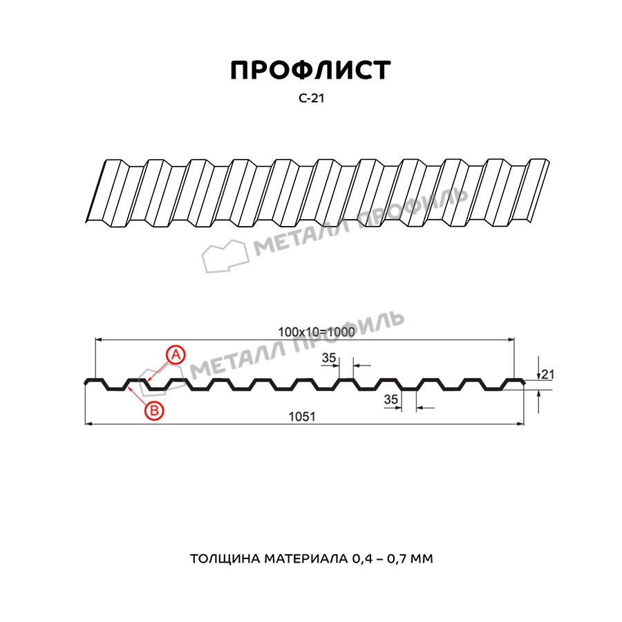Профиль С-21 имеет толщину 0,5 мм, что обеспечивает надежность и долговечность конструкции. Он изготовлен из высококачественной стали, которая защищена от коррозии и внешних воздействий.