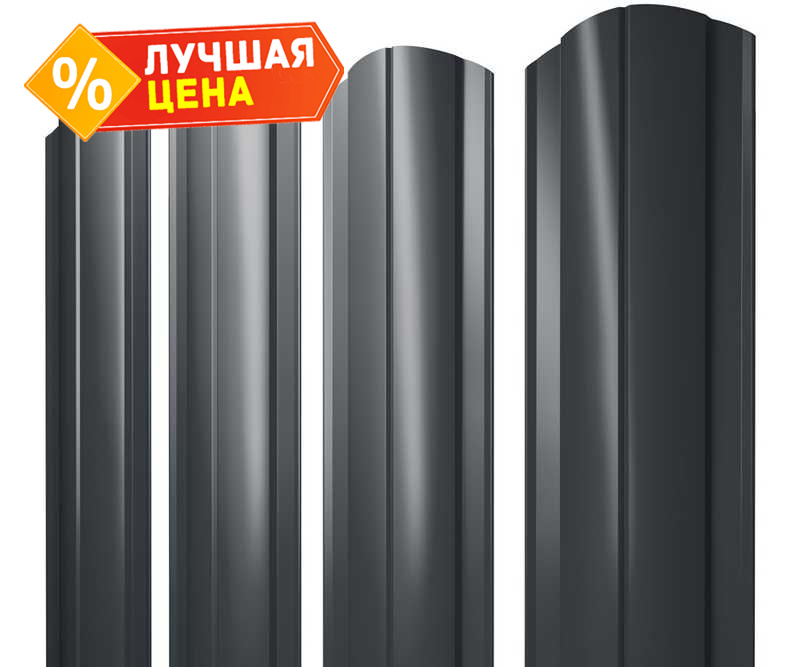 Штакетник Круглый фигурный Grand Line 0,5 Satin Matt RAL7016 Антрацитово-Серый