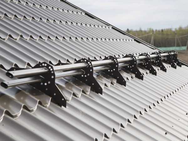 Снегозадержатели предотвращают неконтролируемый сход снега и наледи с кровли. Принцип действия снегозадержателя — порционное пропускание снега и наледи между кровлей и трубками.