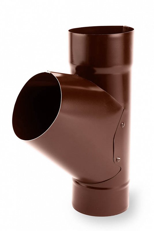 Темно-коричневый цвет тройника позволяет ему гармонично вписаться в любой экстерьер, не нарушая эстетику здания. Также стоит отметить, что тройник легко монтируется, что значительно упрощает процесс установки и экономит время. Все эти преимущества делают тройник универсальным и надежным элементом в системах водоотвода.